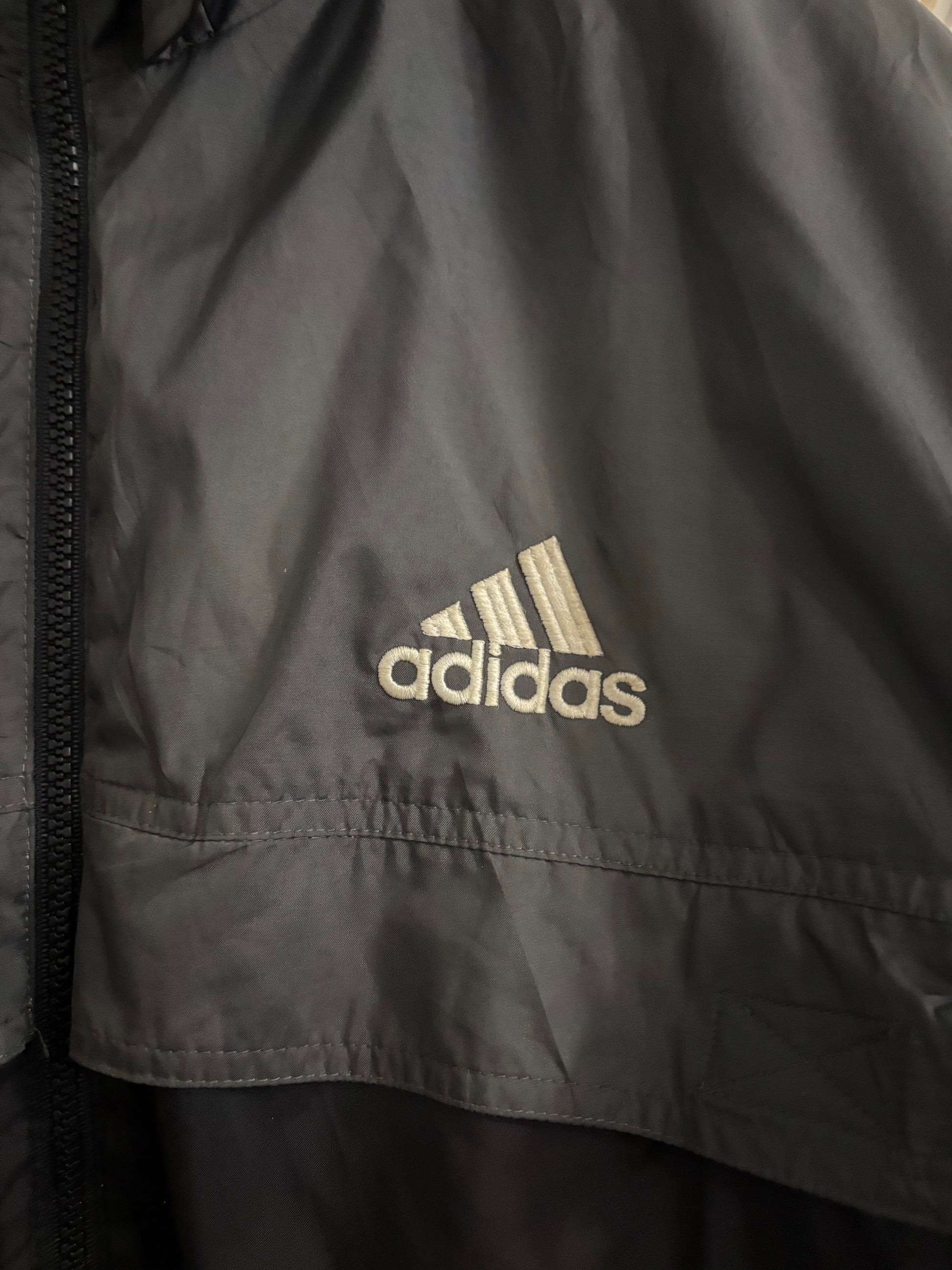 Veste Adidas vintage noire, idéale pour la mi-saison.